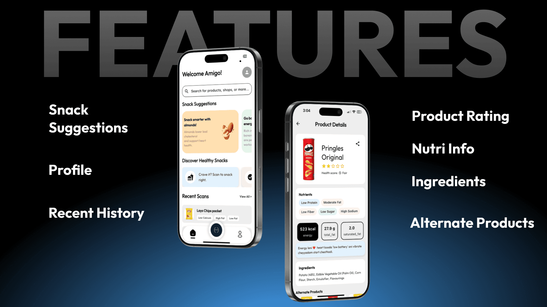Research & Analysis: We conducted interviews and surveys to understand how users approach packaged food choices. This revealed a strong need for quick, digestible insights rather than complex reports.