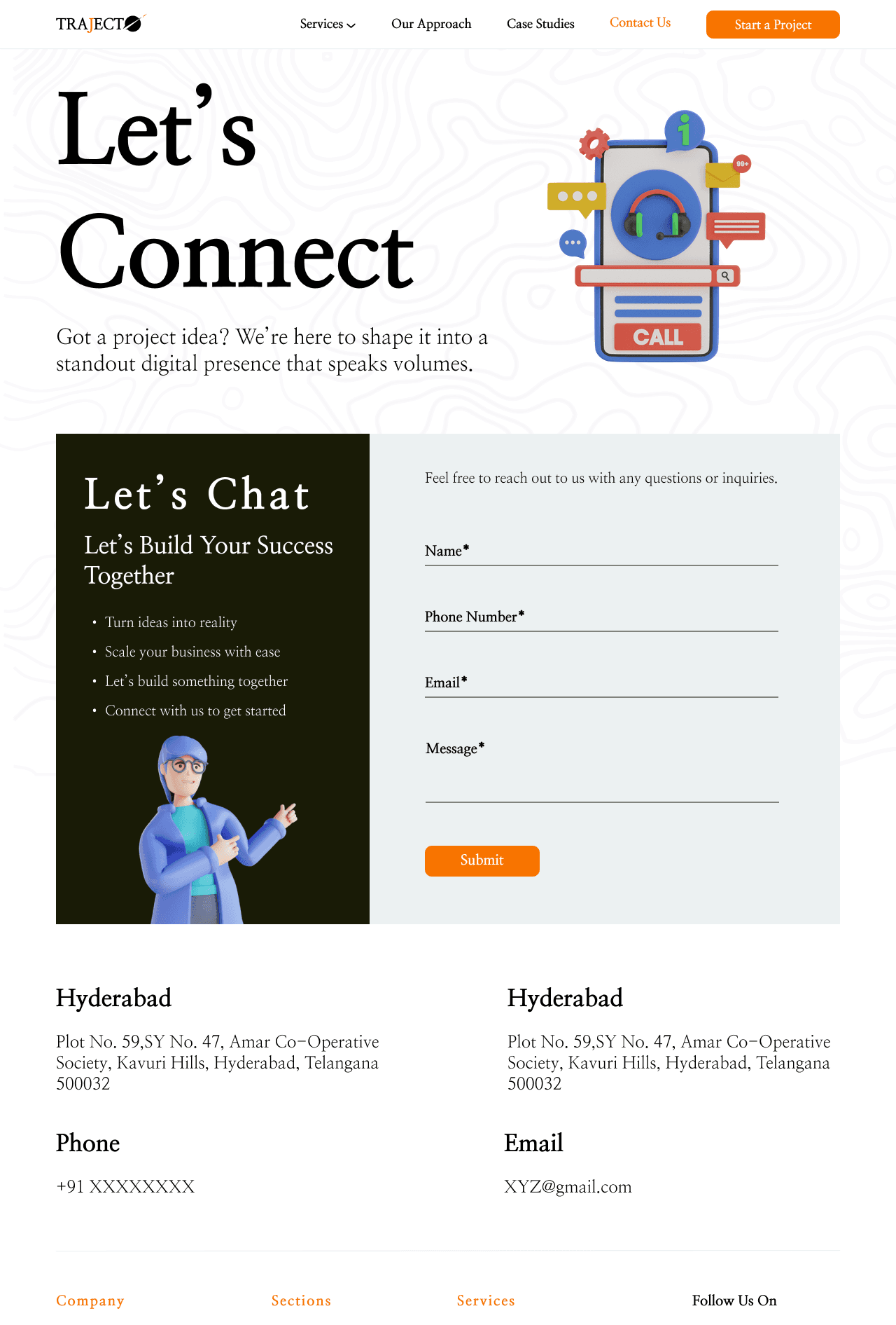 Being a growing digital marketing company, Trajecto needed a website from scratch to showcase their services and attract new clients. They required a modern, responsive, and professional platform that clearly communicated their services while building trust with potential clients. The website also needed strong call-to-actions (CTAs) to drive lead generation and a scalable design system to support future expansion.